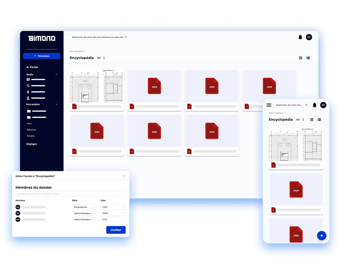 À utiliser en complément de votre GED, mais encore une fois, pensez à standardiser la GED chantier comme source de vérité. Pour éviter les erreurs, démarrer la structure documentaire d’un projet directement dans votre GED de projet. Puis synchroniser vos fichiers via la fonctionnalité d’intégration de votre plateforme.