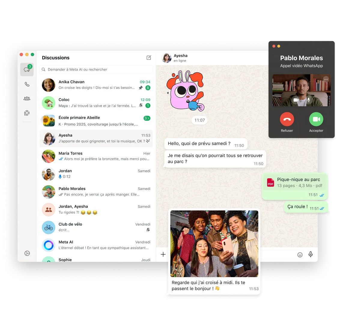 WhatsApp reste l'application de discussion par réflexe sur le chantier : photo immédiate, message vocal, petits groupes d’équipes. Quand un ouvrier veut alerter un chef de chantier, WhatsApp est souvent le plus rapide.