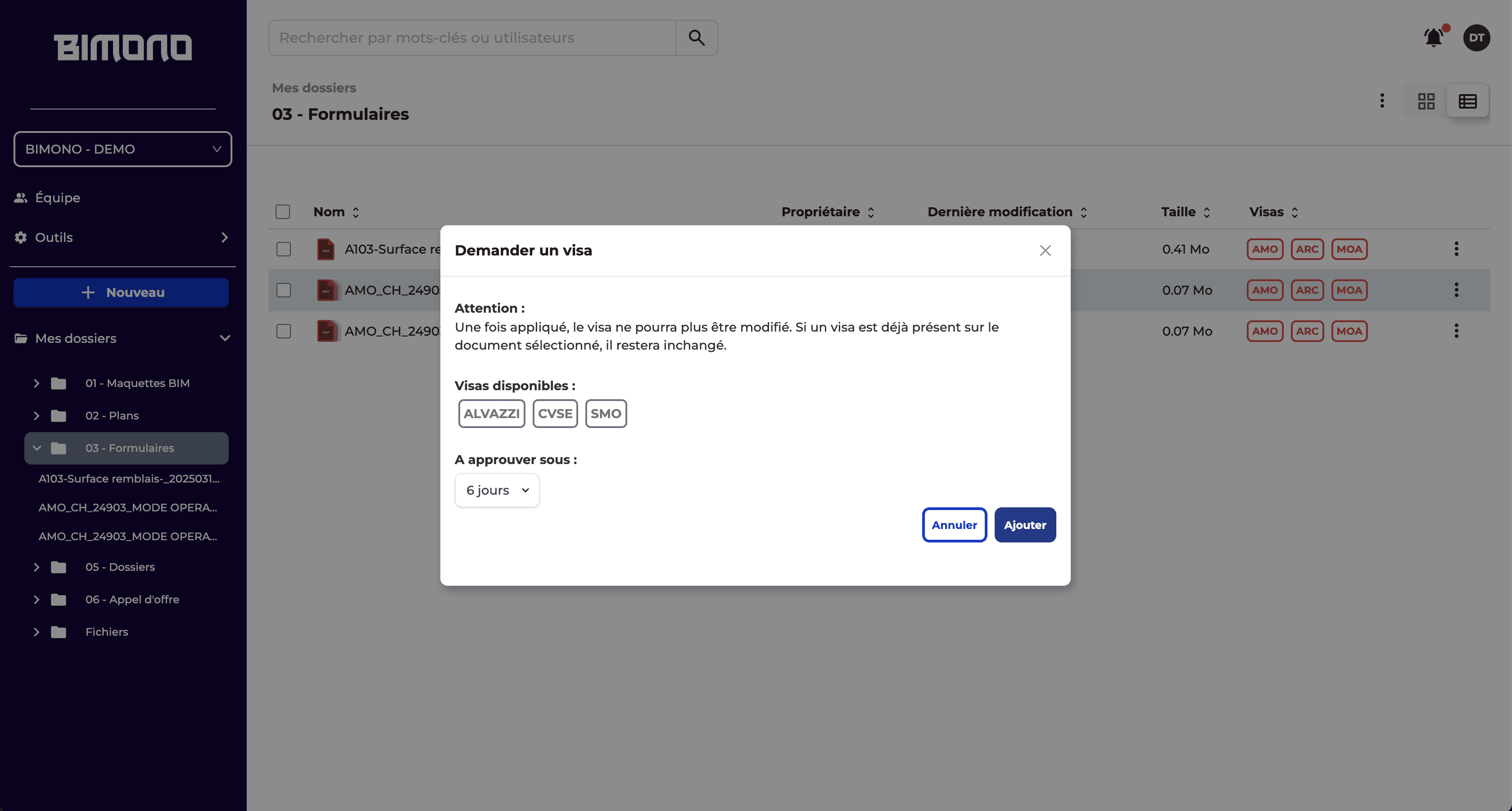 Si vous souhaitez simplifier encore davantage vos workflows, Bimono propose une gestion des visas documentaires pensée pour optimiser chaque étape :