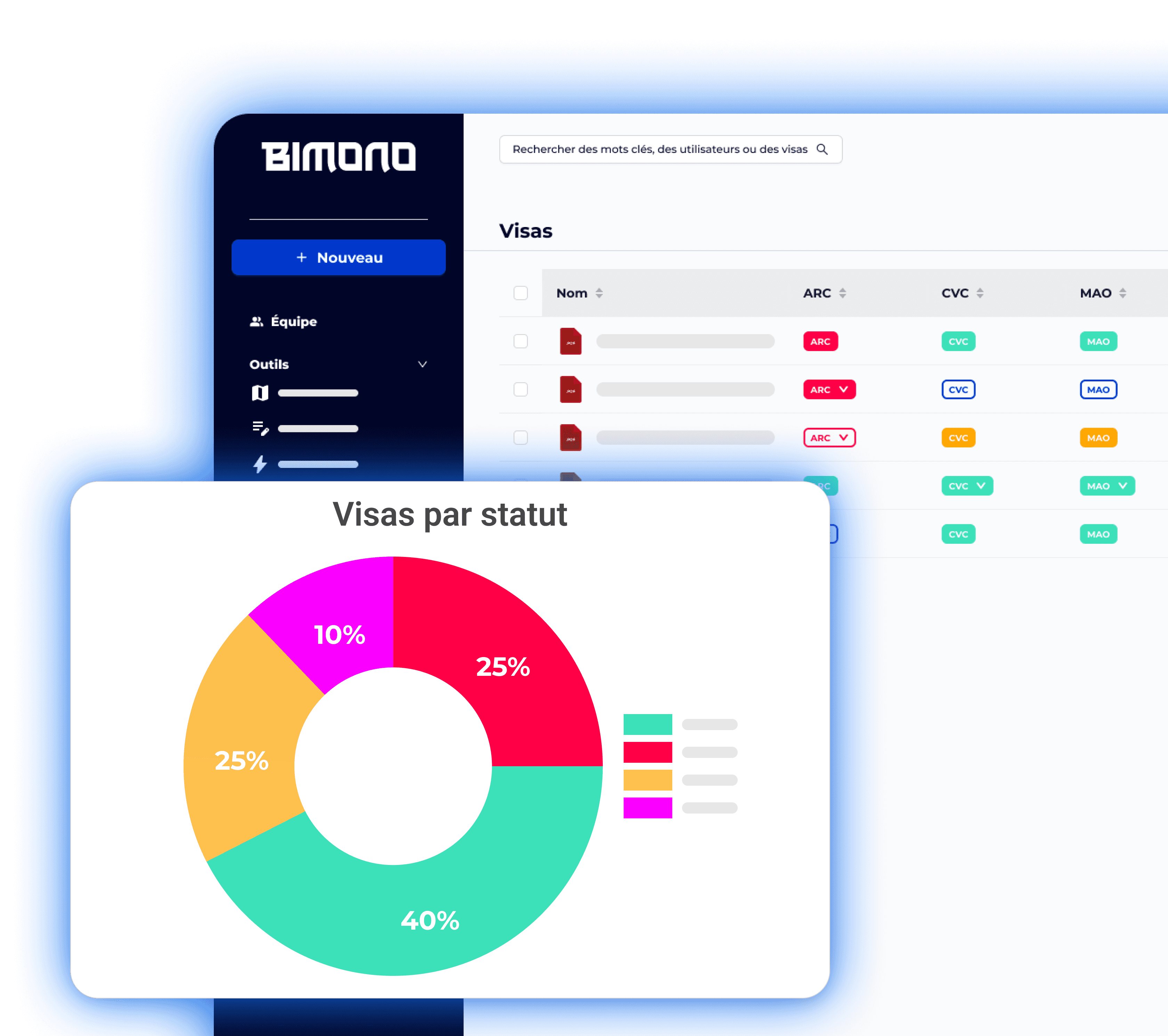 Avec BIMONO, oubliez les e-mails et les validations éparpillées. Définissez vos règles d’approbation, assignez les bons interlocuteurs, et suivez en temps réel l’état de vos visas.